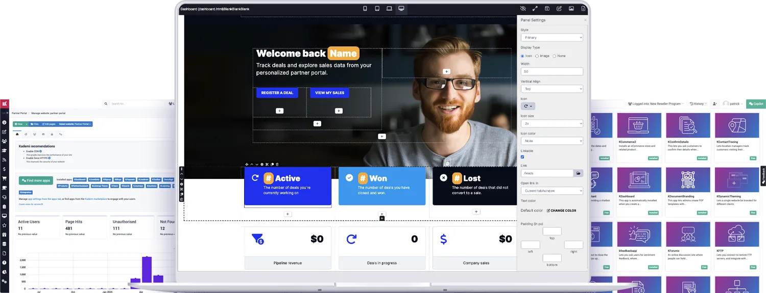 Create amazing, fully functional channel partner portals using Kademi's powerful editor.