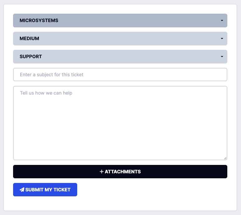 A comprehensive help desk and ticket workflow so users can submit a support request, then track its progress.