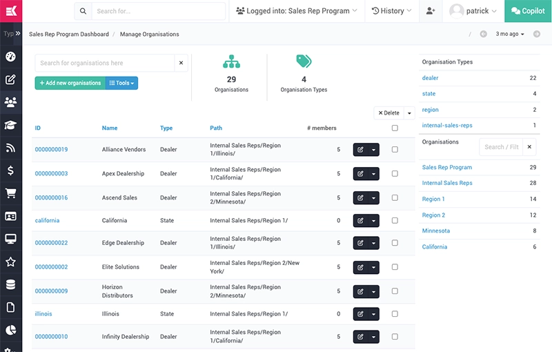 Easily create and manage organizational information relating to companies such as dealers or retailers.